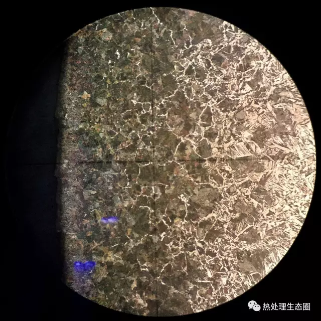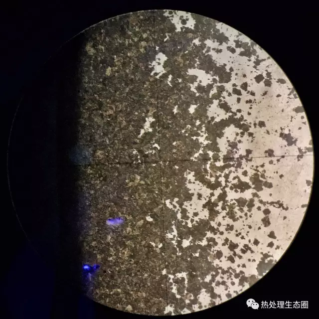 这是手机拍摄图片,不是金相图谱。图中紫色是显微镜镜头产生的光斑。