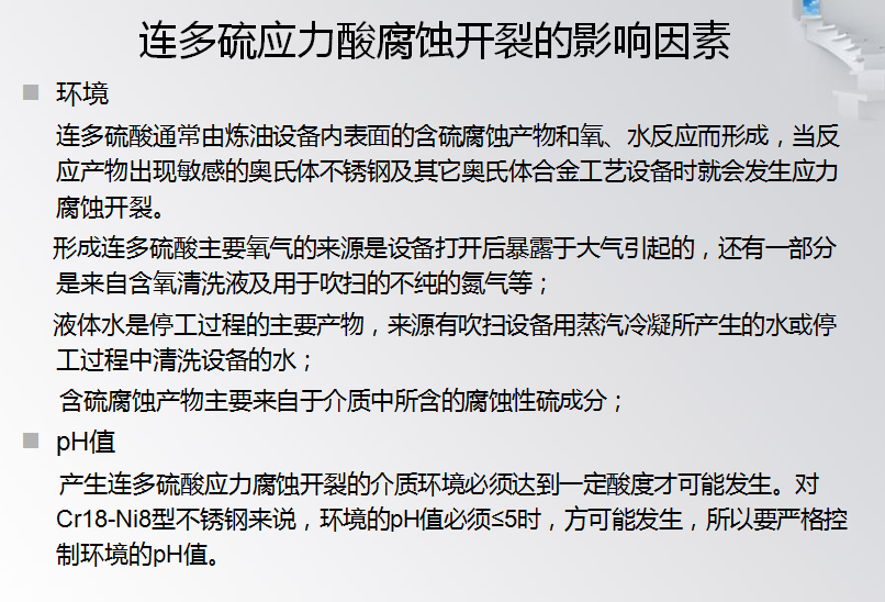 本文全面介绍了连多硫酸的腐蚀开裂机理、影响因素和防范措施: