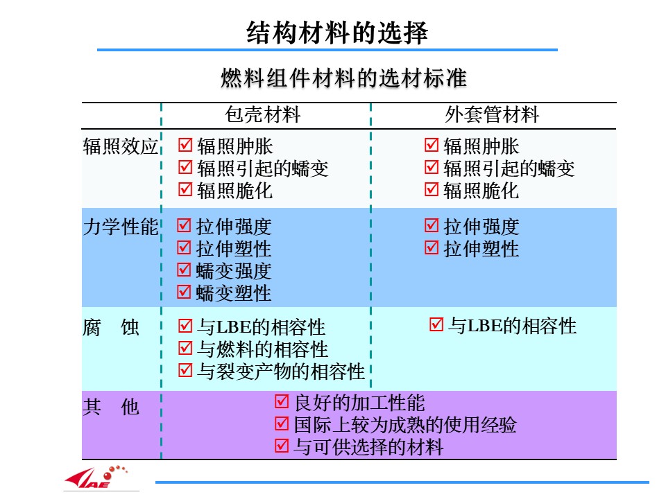 铅铋冷快堆燃料与结构材料的选择及主要问题