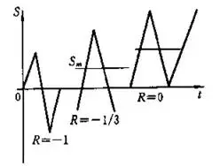 如上图所示,应力比R增大,表示循环平均应力Sm增大。且应力幅Sa给定时有: