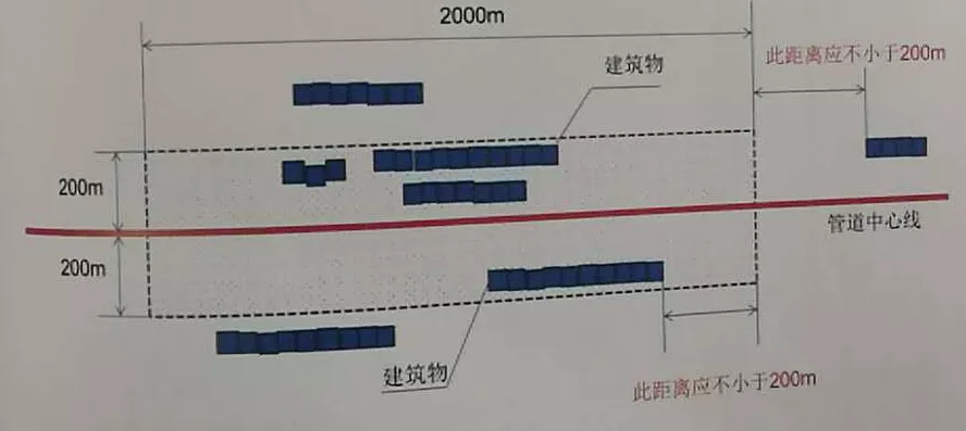 输气管道高后果区识别示意图: