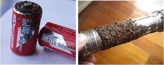 图6 被腐蚀的电池与手电筒