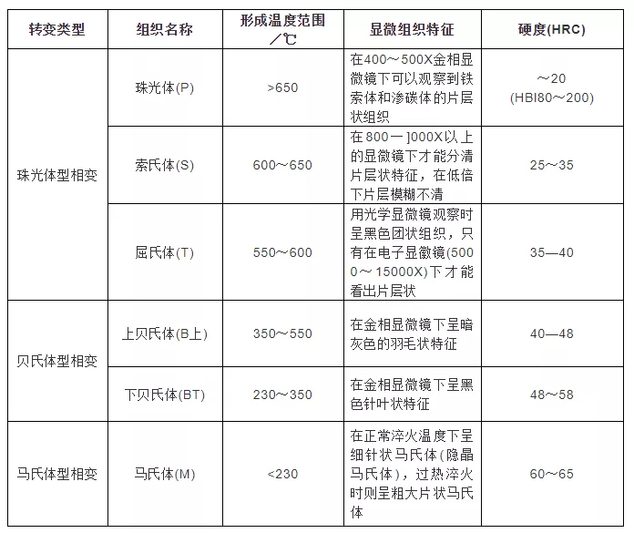 表3.1 共析钢过冷奥氏体在不同温度等温转变的组织及性能