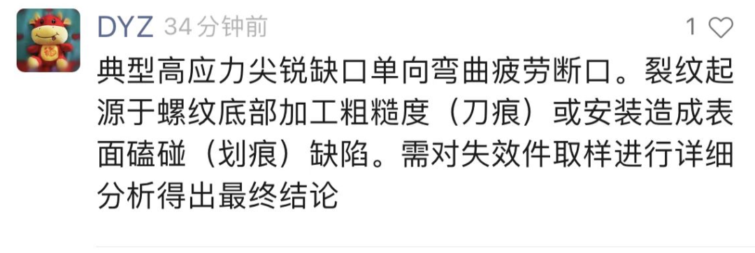 发生螺杆断裂,应力集中+疲劳