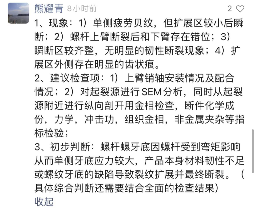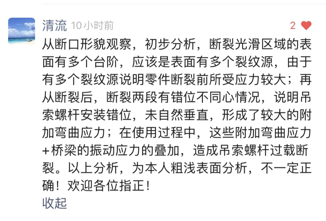 月18日重庆鹅公岩轨道大桥一吊索叉耳螺杆出现了断裂,“热处理生态圈”视频号整理并发布了该新闻,大家可以点击下面视频观看。