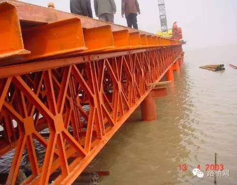 图1、2003年大桥施工临时钢栈桥
