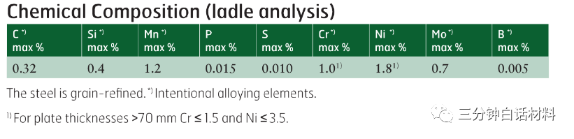 多年来,美国、瑞典、法国及德国开发了各自应用的高硬度装甲钢,虽然各家钢各有不同,但性能-组织-成分材料三要素息息相关,共同的应用决定了其各自的组织及成分都是类似的,所以这些装甲钢的成分,我们还可以找到一些4340的影子,但如本文第二节所述碳及合金含量会有所降低,会加入一些微量合金,如硼,铌,钛等: