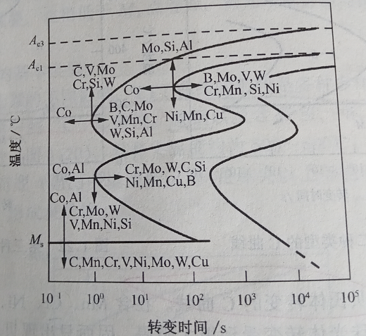 图6 合金元素对过冷奥氏体等温转变图的影响