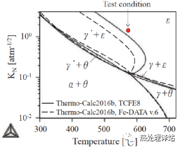 也有一些关于Fe-C-N三元体系的化合物层控制的报告。例如,Slycke等报告了575℃时Fe-C-N三元体系平衡状态图[9, 10]。另外,Du等报告了Fe-C-N三元体系中关于Lehrer曲线图的计算[11, 12]。从这些报告可知,C是稳定ε相的元素。