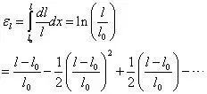 作为一个材料人,必须要掌握材料的基本力学性质,包括应变、应力以及相互之间的关系等。需要了解材料在不同形式的力的作用下的对应的反应形式,并储备常用的材料的力学性质的知识。选择合理的数学模型,确定最终的物理方程,这都要求我们了解材料的基本力学性质。 材料的力学性质通常是由试验测定的。因此,力学性质分为单项加载情况下的力学特征、单项加载卸载的力学特征、循环加载时材料力学特征。其中,单项加载情况下获得的基本力学数据是比较基础的。进行相关的描述前,首先需要了解力学的基本概念,包括应变、应力。 所观察的物体的变化从物理上来讲主要包含位置的变化和形状的变化。位置变化可以通过旋转、平移来表达,形状的变化则是可以通过应变来表达。应变包括长度的变化和方向的变化。如下图所示,长度的相对变化为线应变,可以表示为: 方向的相对改变为剪(角)应变,如: 针对三维情形,可以获得应变张量如式: 需要说明的是,张量的剪切应变分量不等于实际的剪切应变。 图1 应变表达示意图 上述定义属于工程应变。工程应变取决于初始长度,如l,初始长度是事先已知的,所以工程应变是线性的。工程应变的应用局限于材料小旋转,中等大小的刚体旋转将导致非零应变。实际上,一切能够按照一定的规律表示形状变化的量均可以作为应变的度量(但应变的使用通常需要和应力产生极大的关联,方能产生实际价值,因此,需要针对所定义的应变度量建立相关联的应力度量,即共轭的应力定义)。所以,除了上述应变定义以外,还有其他一些比较重要的应变定义。一维问题中,对数应变由下面公式计算: 对数应变也可以泰勒展开如下式所示,其与工程应变存在一定的差别,因此,需要进行区别对待。在有限元程序编写时,特别是静强度分析时,通常为小应变状态,且所划分的单元较小,因此,两者的差别并不大。 对数应变是非线性应变,因为它是未知的最终长度的非线性函数。它同样可称为log应变。三维等效对数应变是Hencky应变。在大应变问题中,对数应变并不能自动适应任意大的旋转。 一维的Green-Lagrange应变由下式计算: 此应变是非线性的,因为它取决于未知的更新长度的平方。此种应变优于对数应变或Hencky应变之处在于,它可自动适应大应变问题中的任意大旋转。这在非线性分析中将会用到。常见的力学试验拉伸数据如下图所示。 仅从几何学的角度定义如上,直观易于理解,但实际应用过程中,这种纯粹几何的定义适应性较差,通常需要从解析几何的角度来进一步地考虑。因此,需要首先建立坐标系。 图2 位移示意图 OA和OB两线元的长度分别为OA=dx,OB=dy。设O点的位移是u(x, y) 和v(x, y),A 点的位移是u(x+dx, y)、v(x+dx,y), B点的位移是u(x,y+dy)、v(x,y+dy)。 则可以定义工程应变如下式所示。 可以看出,上述的位移的描述都是基于最初状态下的位形确定的,我们可以称为0时刻状态下的位形。显然位形发生变化可以通过上述的量进行表达。 那么,对数应变、Green-Lagrange应变应当如何表达呢? 如果我们观察物体上一个点的运动,它的初始位置是{X},最终位置是{x},它运动的量为{u}。 变形梯度也是物体变形多少的一个度量,它的定义是: 变形梯度F,可以过滤掉平动(在通过后续对数计算等可以将平动给过滤掉,实际上F在平动时应该为单位矩阵),剩余旋转、由于应变造成的形状改变。通过矩阵的极分解,可以获得去除了旋转变换后的形状变形。 对数 (Hencky) 应变可由下式计算: 这里对数应变是以矩阵形式表示的应变张量。在三维问题中,Green-Lagrange 应变可直接由拉伸矩阵计算出,如下式所示: 这种应变在计算时直接忽略了旋转矩阵,则可以从变形梯度的形式写出,如下式所示,前两项是线性小应变项,最后一项是应变的非线性项。 当然以上的形式可以通过变形前的坐标进行表示,也可以通过变形后的坐标进行表示。更新拉格朗日应变即为ALMANSI应变。此外,常用的概念还有体积应变。