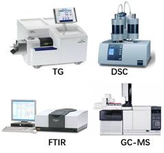 8、 表征方式:热重分析仪-热分析-傅立叶转换红外线光谱仪(TGA-DSC-FTIR),气相色谱-质谱联用仪(GC-MS)