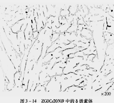 铸造的铬-镍奥氏体不锈钢,铸态化学成份不均匀,铁素体形成元素偏聚区。