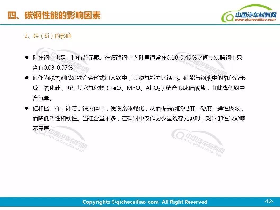碳钢:又称碳素钢,是含碳量小于2.11%并含有少量硅、锰、磷、硫等杂质元素的铁碳合金。工业用碳钢的含碳量一般为0.05%~1.35%。