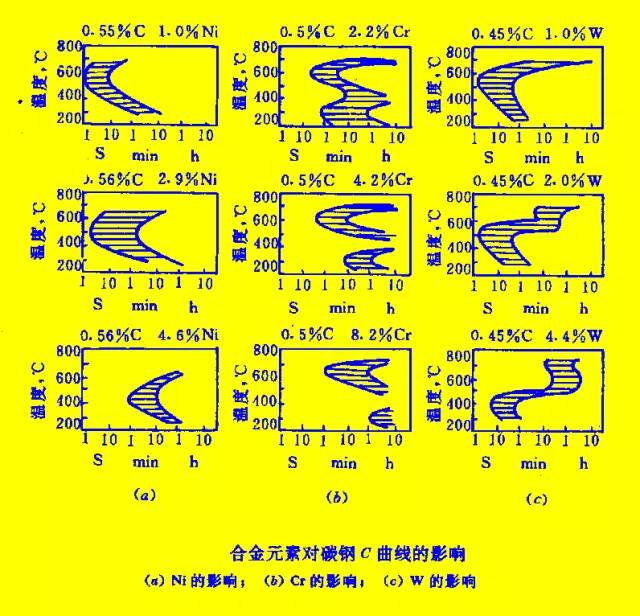 强碳化物形成元素,Cr,Mo,W,V, Nb, Ti, 改变C曲线形状