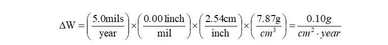 (2)失重ΔW对应的腐蚀电流密度I,换算如下: