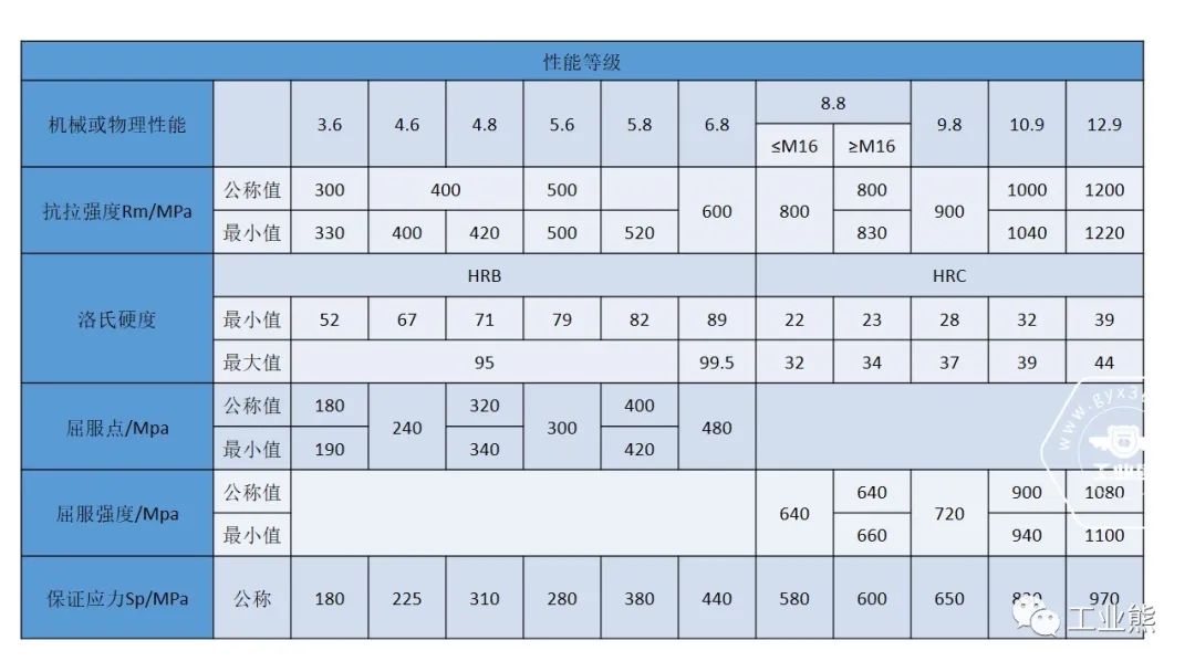 螺栓性能等级标号由两部分数字组成,分别表示螺栓材料的公称抗拉强度值和屈强比值。例如,性能等级4.6级的螺栓,其含义是: