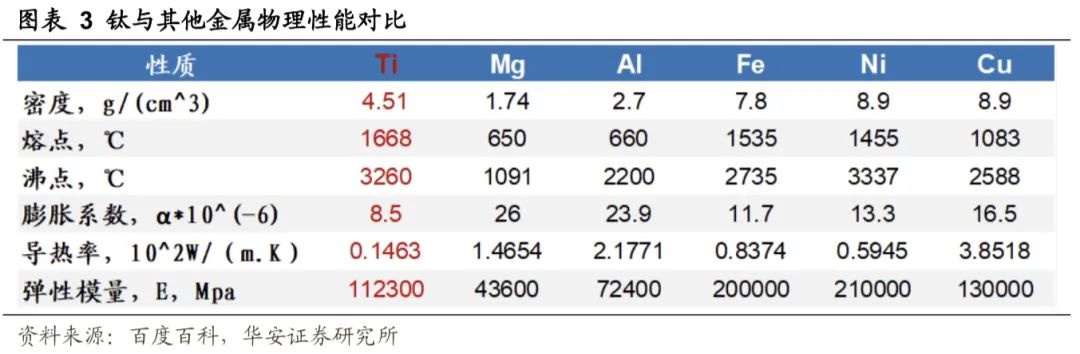 (1) 熔点高,比铁、镍都要高,作为耐热材料有很大的潜力,钛的热膨胀系数较小,高温条件下或热加工过程中产生较小的热应力;(2) 密度小,为4.51 g/cm3,约为钢的60%、铜的50%、铝的1.8倍。