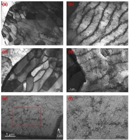 Guennec等人研究了JIS S15C低碳钢在0.2 Hz至20 kHz的常规负载频率和超声波负载频率下的疲劳行为。低碳钢对加载频率具有特别敏感的疲劳性能。加载频率的增加会导致疲劳寿命的延长。下图给出了JIS S15C低碳钢在f=0.2 Hz和f=140 Hz的常规加载频率以及20 kHz的超声加载频率下疲劳至疲劳寿命25%的试样上发现的位错结构。发现,将加载频率从0.2 Hz改变到140 Hz对S15C钢的位错结构没有明显影响,这说明在该频率范围内,材料的疲劳累积损伤的机制未发生明显变化。在20 kHz的超声高频下,发现与在较低加载频率下观察到的结果存在显著差异,说明低碳钢的超声疲劳与高频疲劳相比,累积损伤的机制是有变化的,这一点值得引起注意。