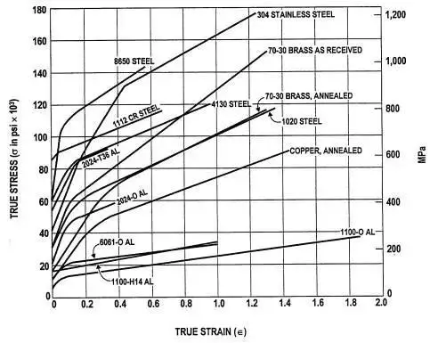 在实际的拉伸曲线上看,大多数金属在室温条件下发生屈服后,在屈服应力作用下,变形不会继续,继续变形必须增加阻力。在真应力-真应变曲线上表现为流变应力不断上升,出现加工硬化现象。这样的曲线称为加工硬化曲线。 加工硬化指数n是一个重要的塑性指标,它代表材料抵抗继续变形的能力。