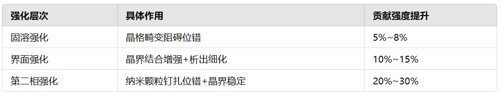 • 界面强化:稀土富集晶界,强化晶界结合力,抑制高温晶粒长大和再结晶软化;