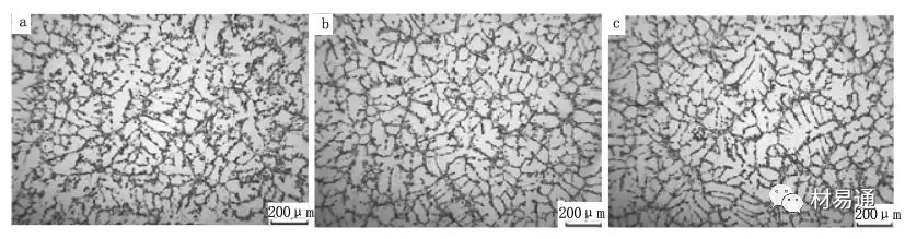 a.RE加入量为0; b.RE加入量为0.3%; c.RE加入量为0.7%