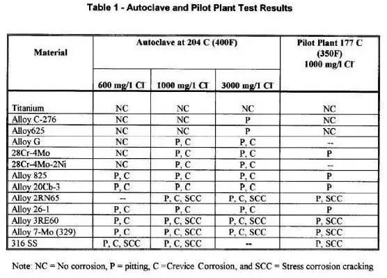 上一张图标,第一行是钛材,可以看出,当C276镍基合金在204度的温度、3000ppm高压釜下开始有点腐蚀时候,钛材还依然在战斗,没有任何腐蚀。