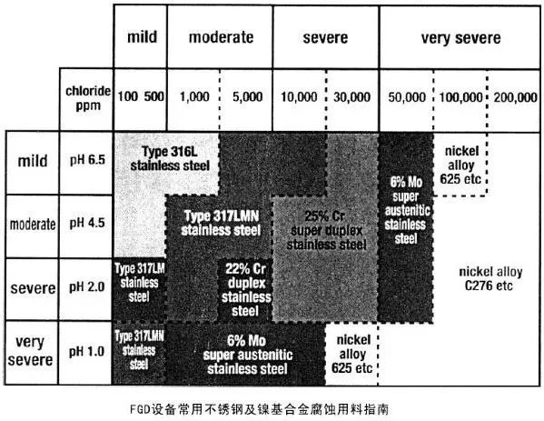 5、FGD脱硫氯离子+氟离子腐蚀选材(55~70度)
