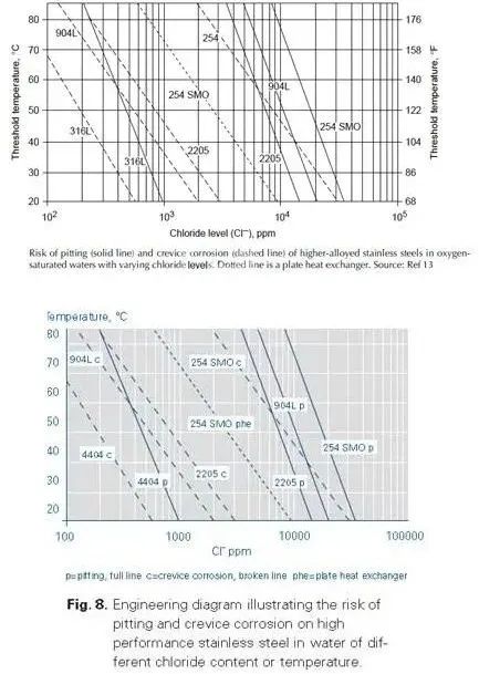 2、不锈钢、超级不锈钢和钛材所用氯离子环境