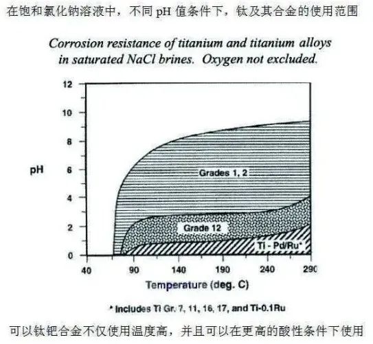 钛在不同浓度,PH值(3-9),温度的NaCl溶液中的使用范围见下图所述!
