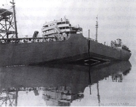 1943年1月S.S. Schenectady号自由轮在码头停泊时,毫无预兆地从中间断裂