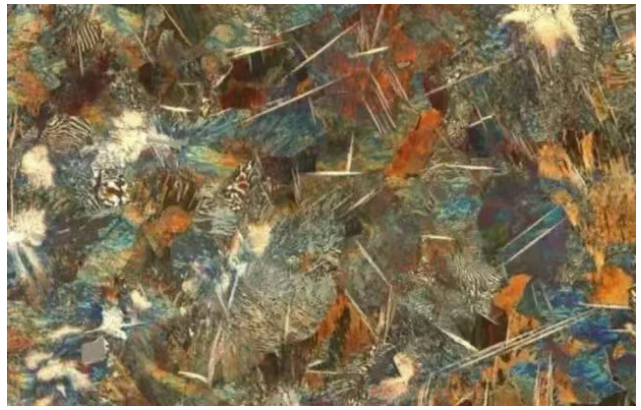 渗碳体魏氏组织:在过共析钢中,奥氏体晶粒度和冷却条件合适时,渗碳体以针状或扁片状、条状出现在奥氏体晶粒内部,形成渗碳体魏氏组织;