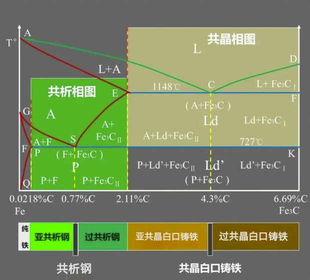 基于Fe-Fe3C相图的Fe-C合金分类: