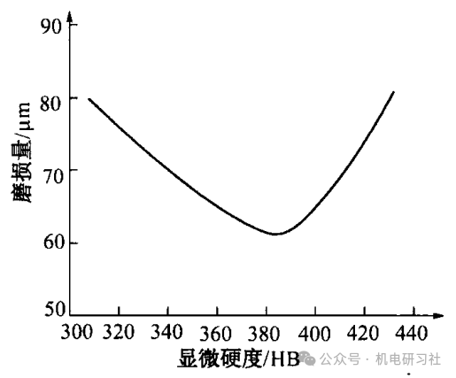 下图为T7A碳素工具钢,当其表面显微硬度提高到380HB时,其耐磨性达到最佳值,如显微硬度进一步提高,其耐磨性反而会下降。