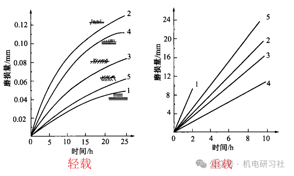 零件表面的加工纹理方向与相对运动方向的相互关系,对磨损量也有很大影响。