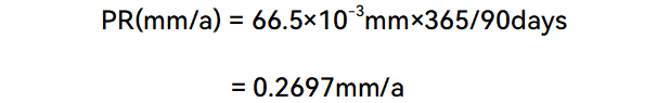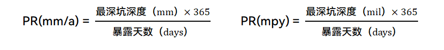 在石油天然气领域,金属管道的腐蚀如同“无声的威胁”,时刻侵蚀设备安全与生产稳定。如何精准监测这种“慢性病”呢? 《对挂片分析标准NACE SP0775-2023版修订内容的解读》,全面解读了腐蚀挂片的使用和操作规范。这些不起眼的金属试片,是如何成为守护管道健康的“沉默哨兵”呢? 本 质:材质、表面处理状态与目标管道设备一致的金属试片。 使 命:被委以重任于金属管道易腐蚀部位(如低流速区、气液界面、固液沉积区),与管道内表面完全暴露在相同腐蚀环境(油、气、水等)。 原 理:作为管道的“替身”,挂片经历与实际管道物流相同的腐蚀环境。定期取出后,通过精密测量其腐蚀失重、表面形貌,推断在相同条件下金属管道内壁的腐蚀状况。 平均腐蚀速率计算是挂片分析的核心步骤。NACE SP0775-2023依据基本原理,给出以下关键公式: CR=K×(W/(A×T×D) ) 公式参数深度解读: CR:腐蚀速率。核心目标值,直观反映金属被腐蚀消耗的快慢程度。 常用单位:毫米/年(mm/a)、密耳/年(mpy)。 W:挂片腐蚀失重。单位:克(g)。通过挂片暴露前精确称重(Initial Weight)和取出清洗后精确称重(Final Weight)相减得到。 A:挂片暴露在介质中的总表面积。需精确测量计算。挂片通常有多个面,直接接触腐蚀介质的面才计入A,以常见的CI COSASCO各类型腐蚀挂片为例,其不同尺寸的表面积见表1。 常用单位:平方毫米(mm²)、平方厘米(cm²)、平方英寸(in²) T:挂片暴露在腐蚀环境中的总时间。单位:天(days)。精确记录挂片安装和取出的日期时间。 D:挂片金属材料的密度。单位:克/立方厘米(g/cm³)。常见金属密度如碳钢X65约7.85 g/cm³、不锈钢316L约8.00g/cm³。 K:单位转换常数。它的值取决于你最终想要的腐蚀速率单位(CR)。 当A取公制单位(mm2)时,CR单位为mm/a:K=3.65×10⁵, 当A取英制单位(in2)时,CR单位为 mpy:K=2.227×104 重要提示:必须根据选定的CR单位选择正确的K值!这是公式应用中最常出现错误点之一。 应用示例 某混输管道中碳钢挂片(D=7.85g/cm³),暴露表面积A=33cm²,暴露时间T=90d,测得失重W=0.2500g。计算平均腐蚀速率(mm/a)过程为: 计算后平均腐蚀速率为约0.0391 mm/a,例如参照Q/HS 2064-2022《海上油气田生产工艺系统内腐蚀控制及效果评价要求定义》内腐蚀程度分级标准,确定为中度腐蚀,详情如表2。 确定腐蚀挂片最深坑的深度,并除以暴露时间。以下公式可根据所需的单位确定最大点蚀率: 应用示例 经过深度测量校准的光学显微镜聚焦在凹坑的未腐蚀金属上,后聚焦在凹坑的底部测量坑深度,如图1所示:某混输管道中腐蚀挂片最深坑深度为66.5μm,暴露时间T=90d。 图1 最深坑深度测量结果 计算最大点蚀率(mm/a)过程为: 腐蚀挂片分析时应结合Q/HS 2064-2022标准第6.1条,腐蚀特征确定内腐蚀控制程度,平均腐蚀速率不应高于 0.076mm/a,点蚀速率不应高于0.210mm/a,挂片表面不应出现肉眼可见的局部腐蚀。 常用各类型腐蚀挂片平均腐蚀速率和最大点蚀速率计算表模板.xlsx。如您需要,可下载直接后利用。 腐蚀挂片宛如一位兢兢业业的“沉默哨兵”,以简洁、高效且可靠的运行模式,持续为油气田工业设施贡献着关键的腐蚀情报。更为精准、快速、全面计算腐蚀速率,是对它传递信息的破译之举,也是理解腐蚀发展态势的关键一步。