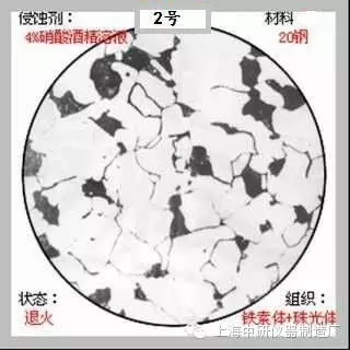 2、20钢-退火-F+P,白色晶粒为F,黑色块状为片P。