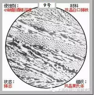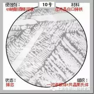 10、过共晶生铁-铸态-Fe3Cll+Ld,板条状是Fe3Cl,斑点状是Ld。