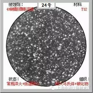 24、T12-780水淬低温回火-回火M和粒状Fe3C。黑色为隐针状回火M,白色颗粒为Fe3Cll。