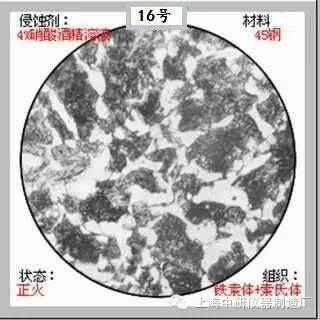 16、45钢-正火-F+S。白色条块状为F。沿晶界析出;黑色块状为S。