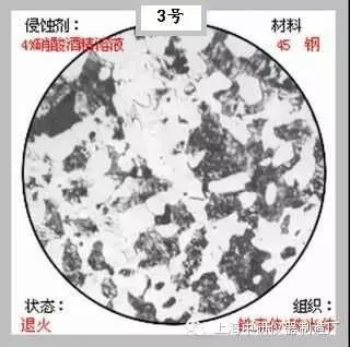 3、45钢-退火-F+P,白色晶粒为F,黑色块状为片状P。