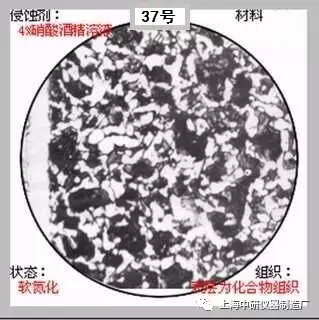 37、40cr 调质+软氮化 软氮化组织。白色表层为多相化合物,其结构一般为:Fe4N、Fe3N、CeN的混合组织。比较致密,余为回火索氏体。