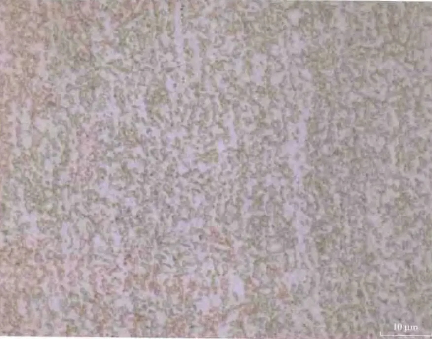工艺:工业生产冶炼出铸锭,然后经热锻、热轧加工得到棒料:再在1050℃保温30mim,水冷:最后在棒料上横向截取金相试样。以往的侵蚀方法:双相不锈钢金相组织的侵蚀方法较多,但以往的方法只能侵蚀出双相不锈钢中的部分组织形貌。或只显示出两相组织,不能显示各相品晶界:或只显示铁素体及其品界,不能显示奥氏体晶界。在以往国内外的书籍及相关文献资料中,没有见到同时显示出奥氏体和铁素体品界、奥氏体李品,并使铁素体着色的图片,相关的侵蚀方法也没有提到。