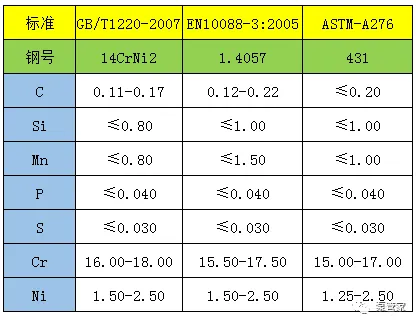 14Cr17Ni2(1Cr17Ni2)--GB/T1220-2007、431(ASTM-276)、1.4057(EN-10088-3:2005)材质是马氏体不锈钢中强度与韧性搭配较好的一种钢种。它对氧化性酸、大部分有机酸以及有机盐类的水溶液有良好的耐蚀性。并在800℃以下的空气介质中具有稳定的抗氧化性能。 成分与标准 成主要用途
