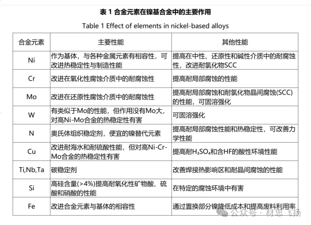 纯镍自身不仅具备较高的塑性与良好的韧性,而且在诸多腐蚀环境中,尤其是在弱还原性酸介质、不同浓度的NaOH 等碱介质,以及气态氟、氯及其氢化物(如 HF、HCl 等)高温气体中,均展现出相当优异的耐蚀性能。由此可见,镍本身属于一种耐腐蚀的金属材料。然而,在较高温度与较高浓度的还原性酸介质中,镍的耐蚀性存在一定不足。特别是在耐氧化性酸、耐含卤素离子的大气、水和各类酸,以及抗高温氧化、硫化等方面,镍自身存在较为严重的缺陷;其强度、硬度等性能也有待进一步提升。部分本身具有良好耐蚀性,且有些还具备抗氧化、抗硫化性能的合金元素,如Cr、Mo、Cu、W、Si、Al 等,在镍中的溶解(固溶)度远大于在铁中的溶解度。部分元素,如铜在镍中甚至可实现无限固溶。同时,向镍中添加这些元素,部分元素(如 Ti、Al 等)还可通过固溶强化或时效强化显著提高镍的强度。因此,镍基耐蚀合金是通过向镍中单独添加或多元素(Cu、Cr、Mo、W、Si)复合添加等方式发展而来的。以镍为基(镍含量≥50%)的耐蚀合金既保留了镍的优良特性,又兼具各合金元素的良好性能,被广泛应用于石化、能源、海洋、航空航天等领域。