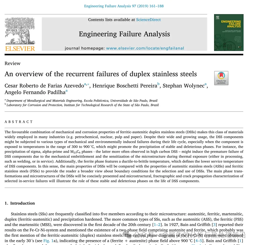 从20世纪30年代至60年代,陆续开发并生产了多种成分的双相不锈钢(DSS)。其中大部分DSS兼具优异的耐腐蚀性与高强度,但延展性与断裂韧性相对较低。