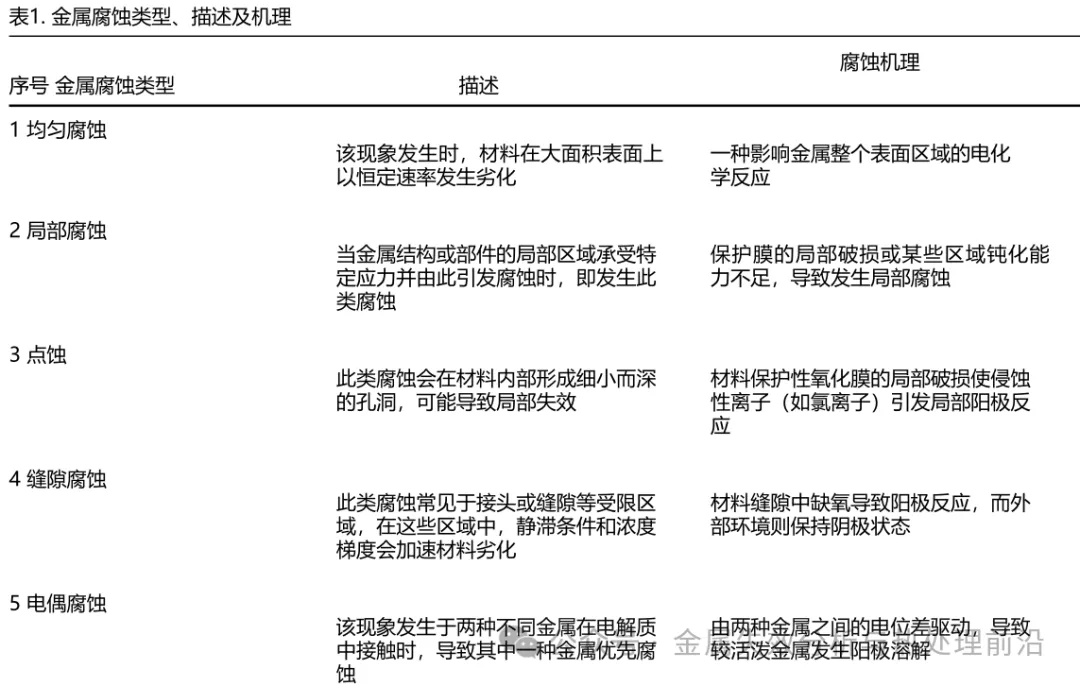 金属腐蚀在不同形式下表现出各异的机理与后果。然而,如表1所示,在所有腐蚀类型中,铁路结构最常遭遇均匀腐蚀、点蚀、缝隙腐蚀及电偶腐蚀。
