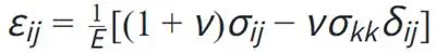 其中, εij是应变张量分量, σij是应力张量分量, E是杨氏模量, v是泊松比, δij是克罗内克符号。