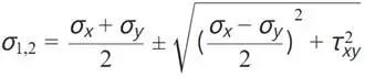 对于平面应力状态(一个主应力为零,如σz=τXZ=τyZ=0),主应力计算可简化为: