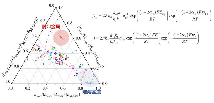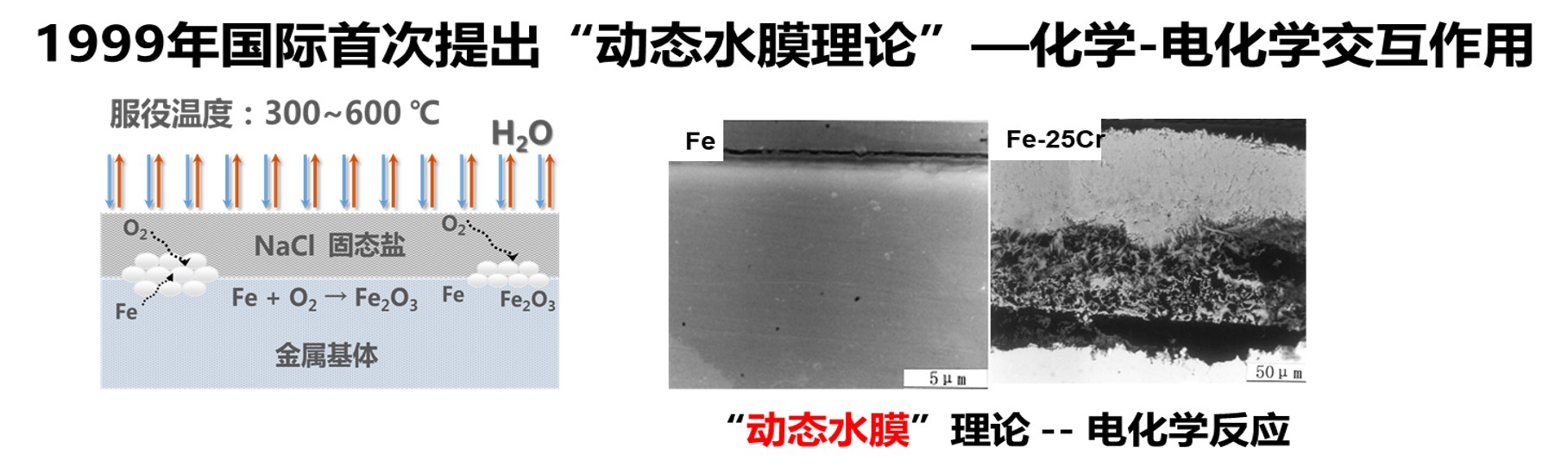 首次实现了中温固态盐下电化学表征,证明了“动态水膜”理论,揭示海洋高温金属化学-电化学交互作用机理;在钛合金上进一步建立“温度场-电化学场” Cl活性催化腐蚀机制。
