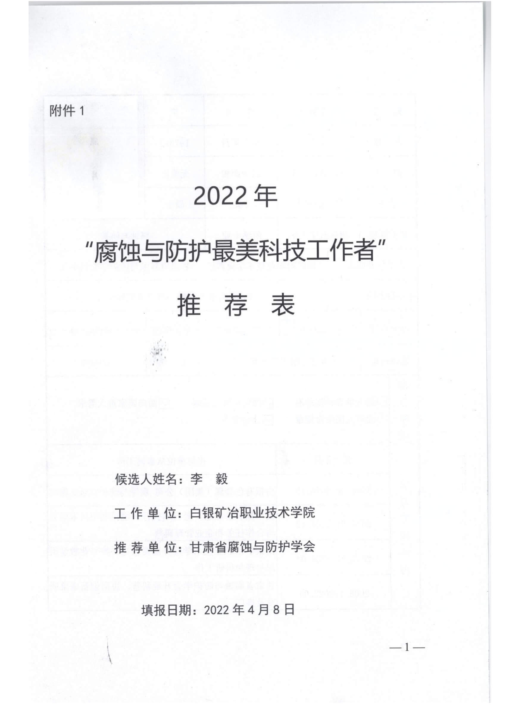 关于开展2022年“腐蚀与防护最美科技工作者”学习宣传
